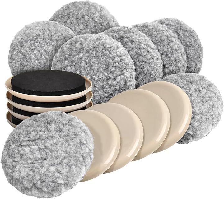 「移動キット」カーペット用の滑り止めパッド8枚と、あらゆる硬い表面用のフリースカバー8枚。