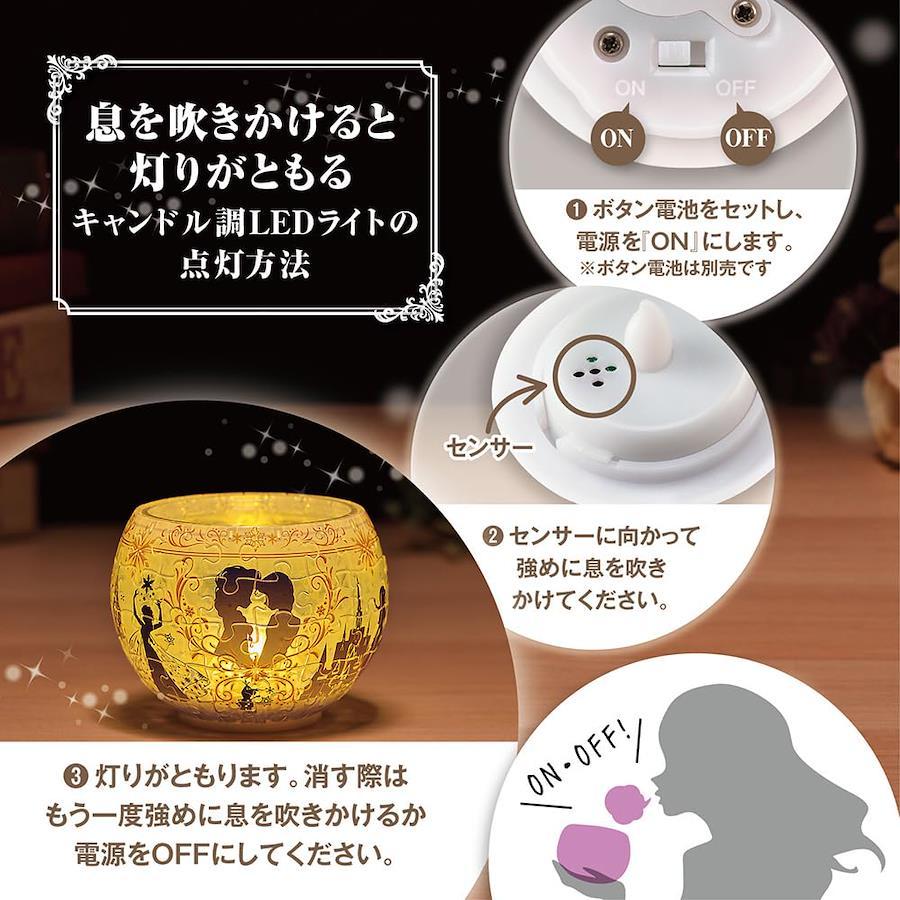 3営業日以内に発送≪新品未開封品≫オーロラを思わせるグラデーションが美しいランプシェードパズル「オーロラ・グラス」シリーズがアナ&エルサで登場です。映画に登場するキャラクターやアイテムのシルエットが散りばめられた大人カワイイデザインです。ランプシェードパズルは透明ピースの立体パズルです。組み立てて専用台座に光を灯せば、キャンドル調のルームライトとなり、あたたかみのある優しい光がお部屋を静かに照らします。息を吹きかけると灯りがともるキャンドル調LEDライトの点灯方法(1)ボタン電池をセットし、電源を「ON」にします。※ボタン電池は別売です(2)センサーに向かって強めに息を吹きかけてください。(3)灯りがともります。消す際はもう一度強めに息を吹きかけるか電源をOFFにしてください。