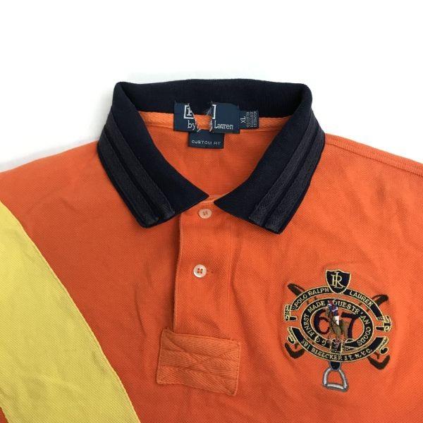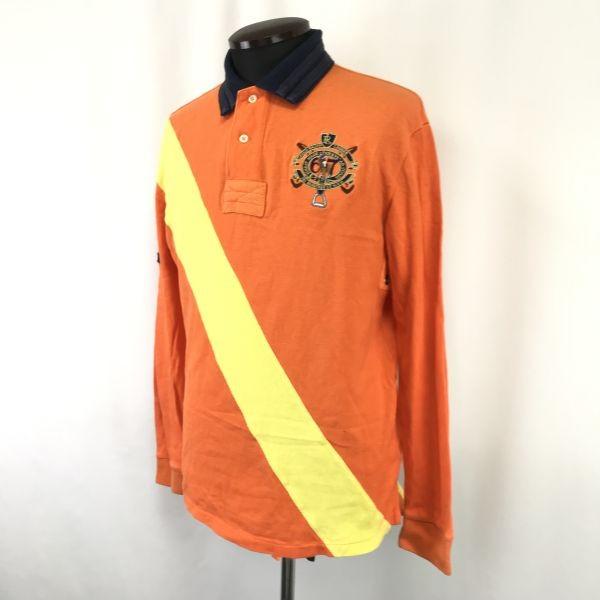 90s-00s★POLO RALPH LAUREN★Rugby shirt/long sleeve polo shirt [Men's XL/orange] embroidery/rugby/jersey/TOPS/SHIRTS/Vintage◆sBH946