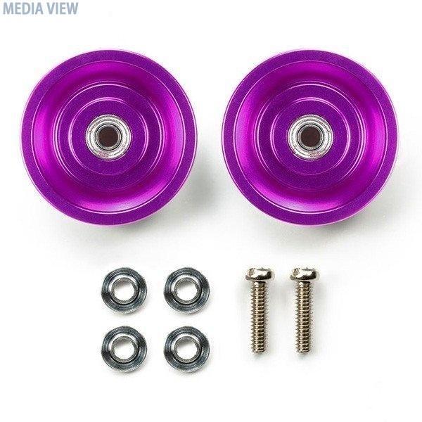 タミヤ 95541 ミニ四駆特別企画 HG 19mmオールアルミベアリングローラー (テーパータイプ・パープル) 【 マシンの性能アップやセッティングに役立つパーツです 】すり鉢(テーパー)形状により、マシンがコースフェンスに乗り上げた時にコース内へ復帰しやすい直径19mmのアルミベアリングローラーです。本体に520ベアリングを埋め込んだスムーズな回転も魅力。高級感あるパープルのアルミローラーがマシンをゴージャスに仕上げます。【 基本スペック 】アルミベアリングローラー2個に加えて、取り付け用の2×8mmビス2本やローラー用スペーサー4個もセット【使用可能マシン】ミニ四駆PRO、ミニ四駆各車 (一部のボディは加工が必要です)