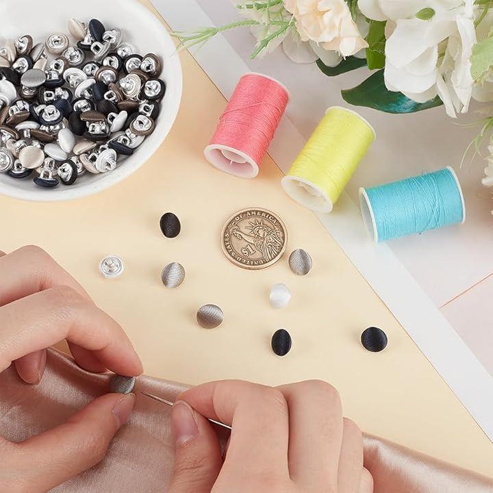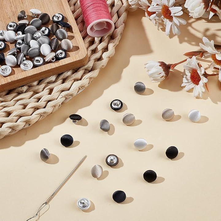 高品質: 布に包まれた金属ボタンは、腐食しにくく耐久性のある高品質のアルミニウムで作られており、高品質のサテン生地で包まれています。