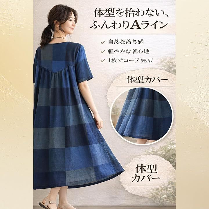 ウエストまわりはゆったりとした設計で、体のラインを拾いにくく自然に体型カバーが叶います。