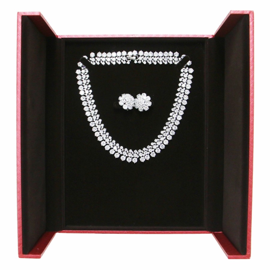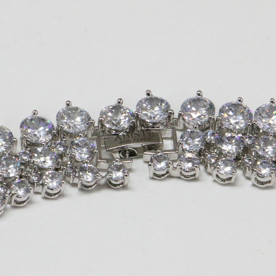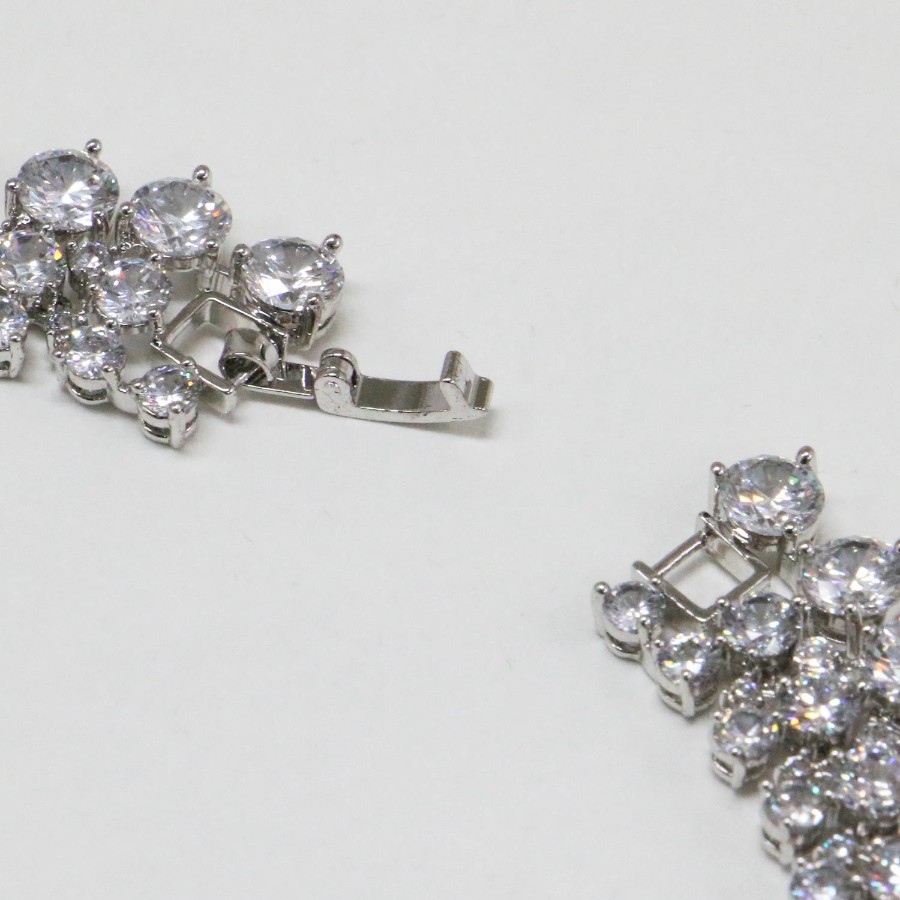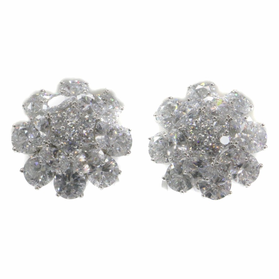 ABISTE | 40th Anniversary Bijou Flower Earrings & Necklace Set | Costume Jewelry Rhinestone | Silver | Brand Accessory [Women's] [Used] [K4775]