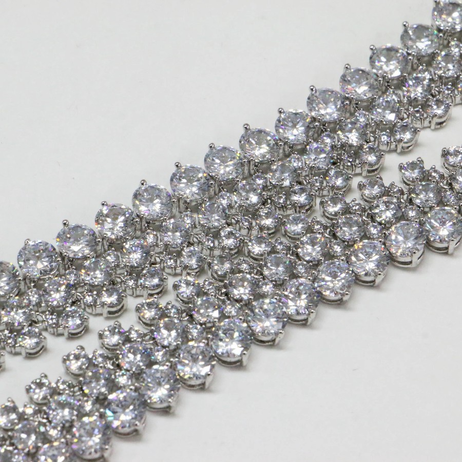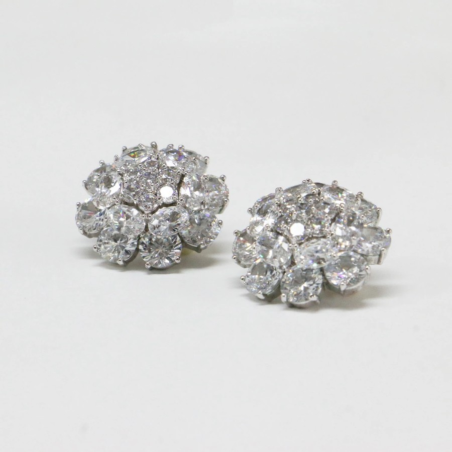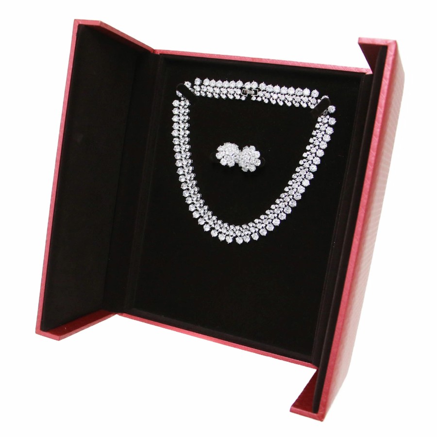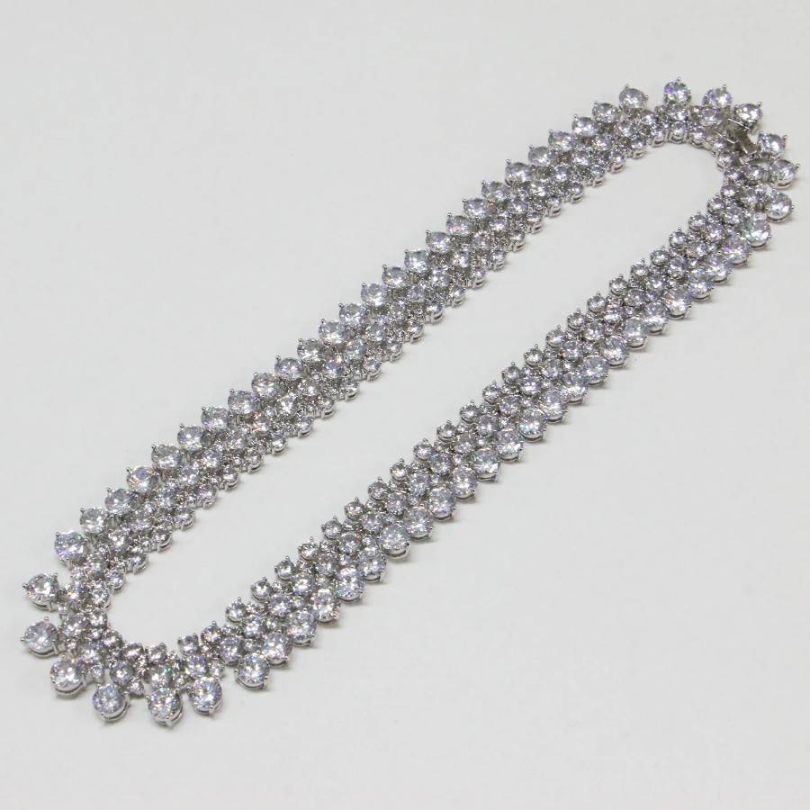 ABISTE | 40th Anniversary Bijou Flower Earrings & Necklace Set | Costume Jewelry Rhinestone | Silver | Brand Accessory [Women's] [Used] [K4775]