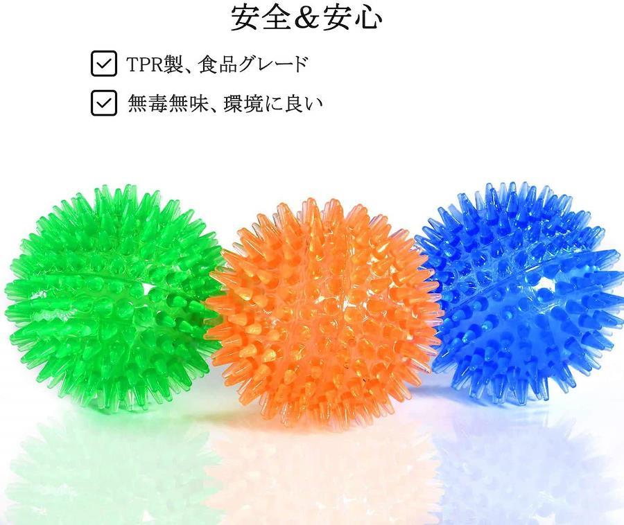 【犬おもちゃの仕様】素材は、丈夫で柔らかく食品用にも使用する天然ゴム製です。ボールサイズ:S(6.5CM) M(9CM) 対象:中小型犬【音が出ます】先に突起があるボールです。噛むと音が出るので、愛犬が興味を持って遊ぶようになります。【安全】天然素材を使用しているので、食べても安全です。また柔らかいので、歯への負担はありません。普段のお手入れは、さっと水で流すだけで、いつでも清潔に保てます。【用途】愛犬遊びや訓練に使用して下さい。歯みがき効果にも期待出来ます。マッサージボールとしても使用可能です。【パッケージ内容】ボール3ヶ、ポーチ1ヶ 犬が好む3色をセットにしました。また、持ち運びに便利なポーチが付属します。お得な3個入りおもちゃです。