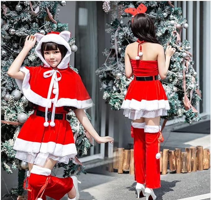 【お得な6点セット】ワンピース+サンタ帽子+首飾り+袖カバー+ベルト+透明ブラストラップ 【サイズ(約)】バスト70-90cm、ウエスト60-80cm ※収縮性のある素材とゴムを使用していますので、幅広くご着用できます。【年齢層アドバイス】【年齢層アドバイス】15歳~35歳