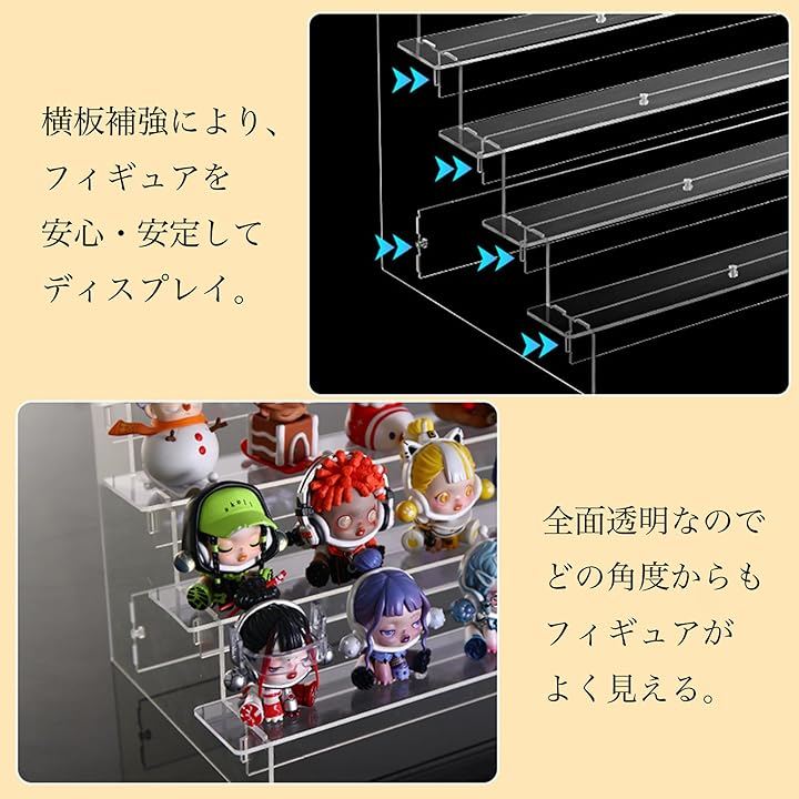 「後列まで全部見える」 段違いひな壇設計で、後ろのフィギュアも隠れません。
