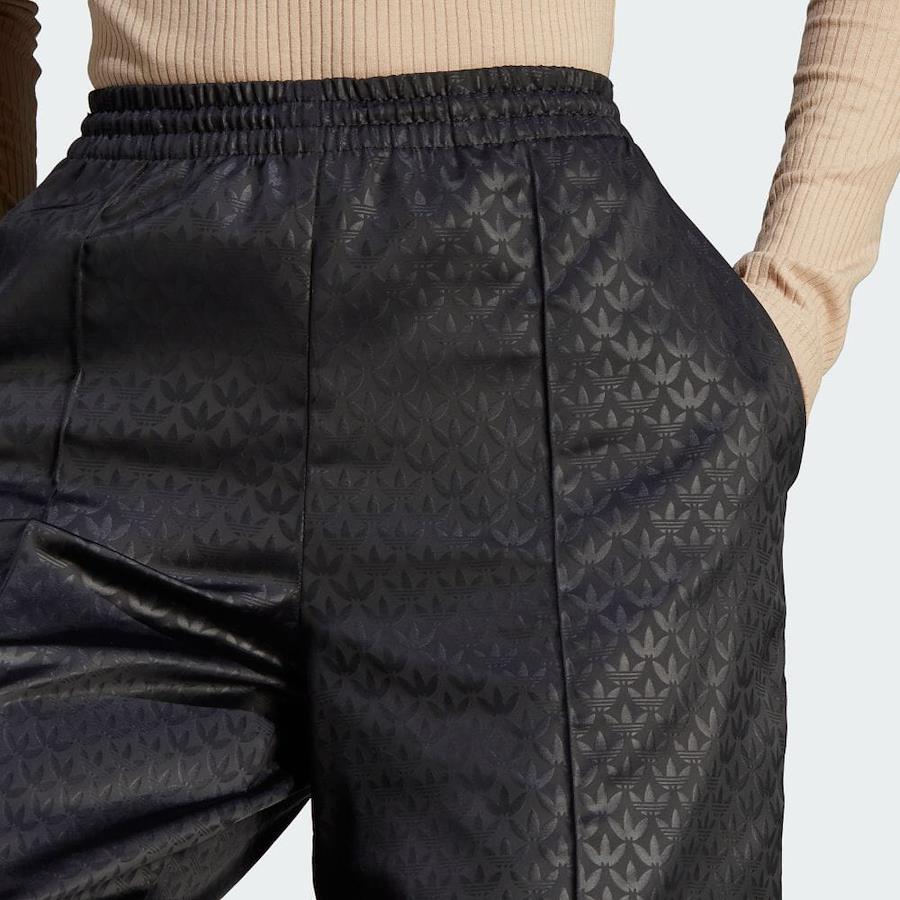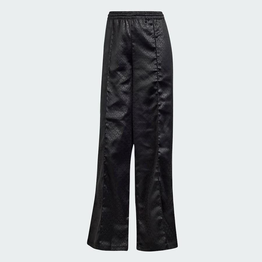 (アディダスオリジナルス) adidas Originals【大きいサイズ3XLまで】トレフォイル モノグラム サテン トラックワイドパンツ ストリート ダンス レディース WOMEN GZR46 IJ6010 WOMEN TREFOIL MONOGRAM SATIN TRACK WIDE PANTS BLACK