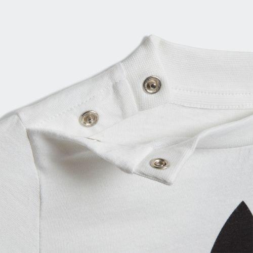 【DETAIL】・キッズ向けのTシャツとショーツのセットアップ。・お馴染みのスポーティールックが、新鮮味のあるスタイルで登場。・大きなトレフォイルロゴを大胆にあしらったTシャツとクラシックなスリーストライプスを配したショーツを組み合わせた、キッズ向けのセットアップ。・素材には、ソフトで滑らかな肌触りの、コットンジャージー生地を採用。