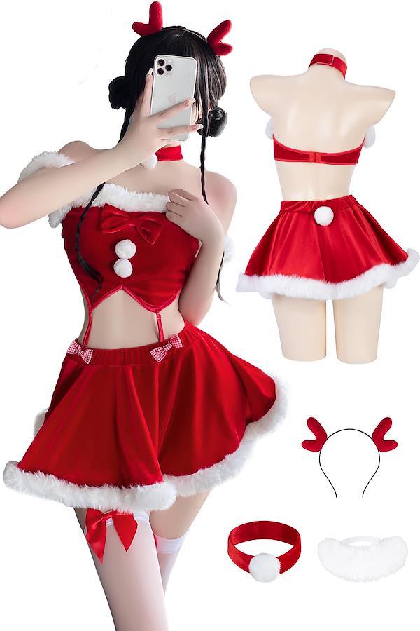 [ADSEXY] サンタ コスプレ セクシークリスマス お得な6点セットトップス スカートTバック ヘアバンド アームバンド ネックリング 大人コスプレコスチューム レディース 可愛い 誘惑 仮装 衣装 女性用 恋人 セット バレンタインデー クリスマス 記念日 新年