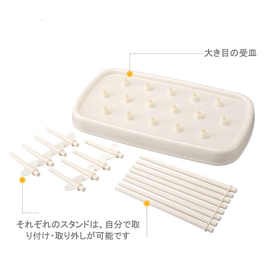 【優れた素材】PP(スタンド)、ABS(トレー)。安全性と耐久性も優れています。【多機能乾燥ラック】哺乳瓶、おしゃぶり、乳首、ボトル、などの水切りに向いている水切りツールです。【簡単収納】それぞれのスタンドは、自分で取り付け・取り外しが可能です。【持ち運び便利】折りたためるので携帯に便利(旅行先・帰省時などに)、広げてスタンドを立てるだけで簡単にご使用可能です。【サイズ】製品のサイズ:使用時:32 x 18.5 x 19cm。