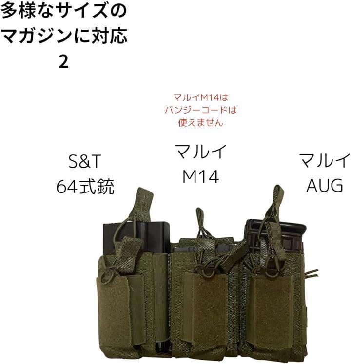 M4、AK、G3、M14などのマガジン3本とハンドガンマガジン3本を収納可能。