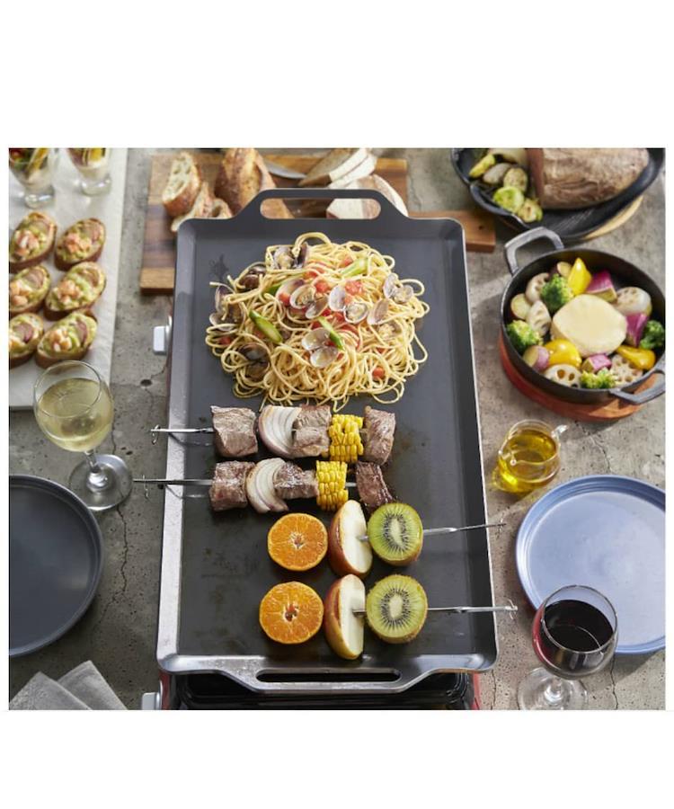 【商品仕様】◇本体サイズ:幅53×奥行31.4×高さ16.6cm ◇本体重量:5.6kg ◇使用できる鍋のサイズ:最大=鍋底直径24cm/最小=鍋底直径15cm ◇使用燃料:カセットボンベ ◇発熱量:バーナー右=2.9kW(2500kcal/h)/バーナー左=2.1kW(1800kcal/h) ◇連続燃焼時間:バーナー右=約70分/バーナー左=約100分 ◇点火装置:圧電点火方式 ◇安全装置:圧力感知安全装置(ガス通路閉止型)