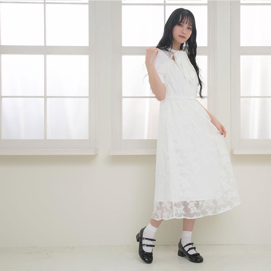 レースの透け感と大きめのリボンで程よい肌見せが叶います。