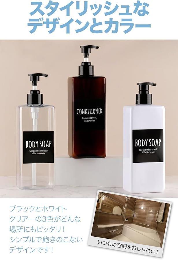クリアカラーで、シンプルなデザインのボトルが並べた時に水回りの印象がスッキリ整い統一感が生まれます。