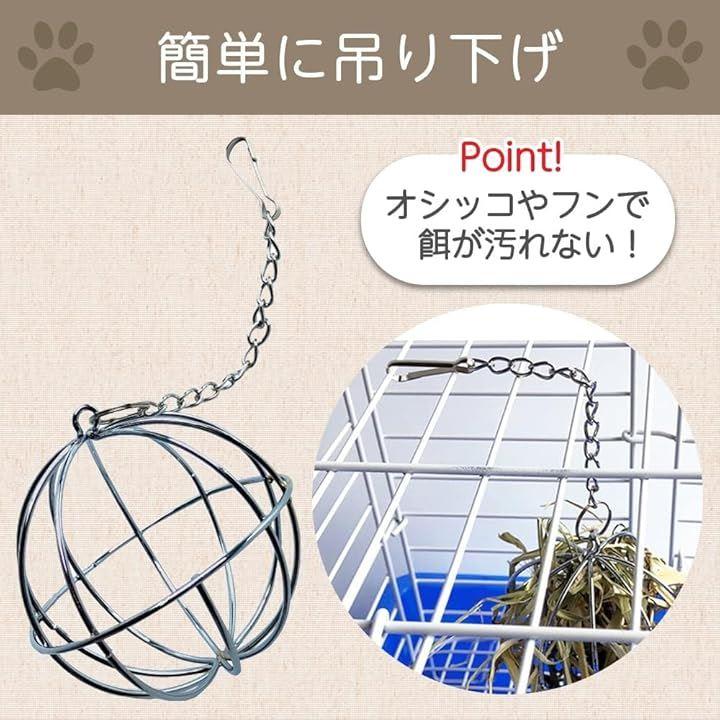 「便利な吊り下げタイプ」オシッコなどで牧草が汚れることを防止でき、食べるときに周りに散らかしにくいのでケージ内が汚れにくくなっております。