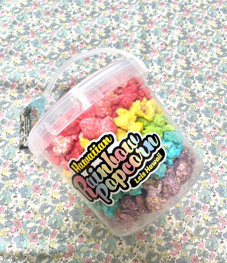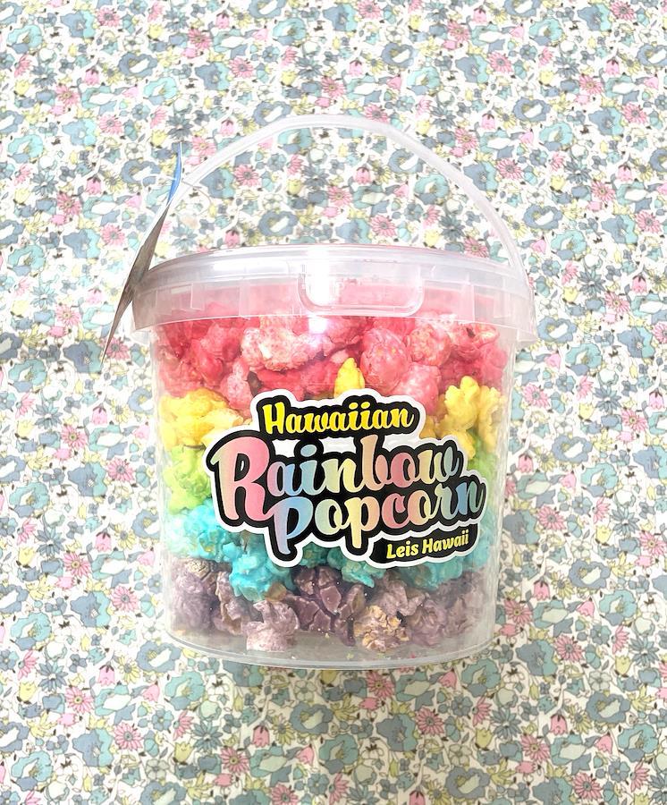 ストロベリー・パイナップル・グリーンアップル・ミント・グァバの5つの味が楽しめる、見た目も可愛いレインボーポップコーンです。