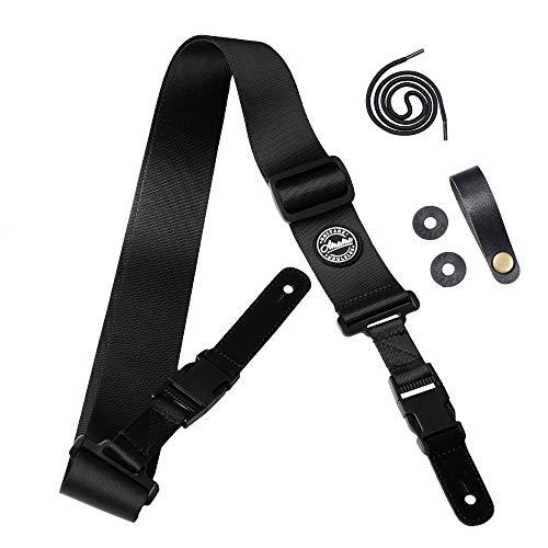 自動車のナイロンシートベルト素材はストラップを耐久性があり安全にします。両端のバックルは、ストラップの迅速かつ容易な除去のために取り外し可能です。ストラップの長さを90cmから160cmに調整して、ほとんどのプレーヤーに合う高品質のABSプラスチックバックル。を含む無料のアクセサリー 1xヘッドストックボタンタイ、1xヘッドストックタイレース、2xラバーストラップブロック。アコースティックギター、エレキギター、ベースギター、ウクレレに適合。