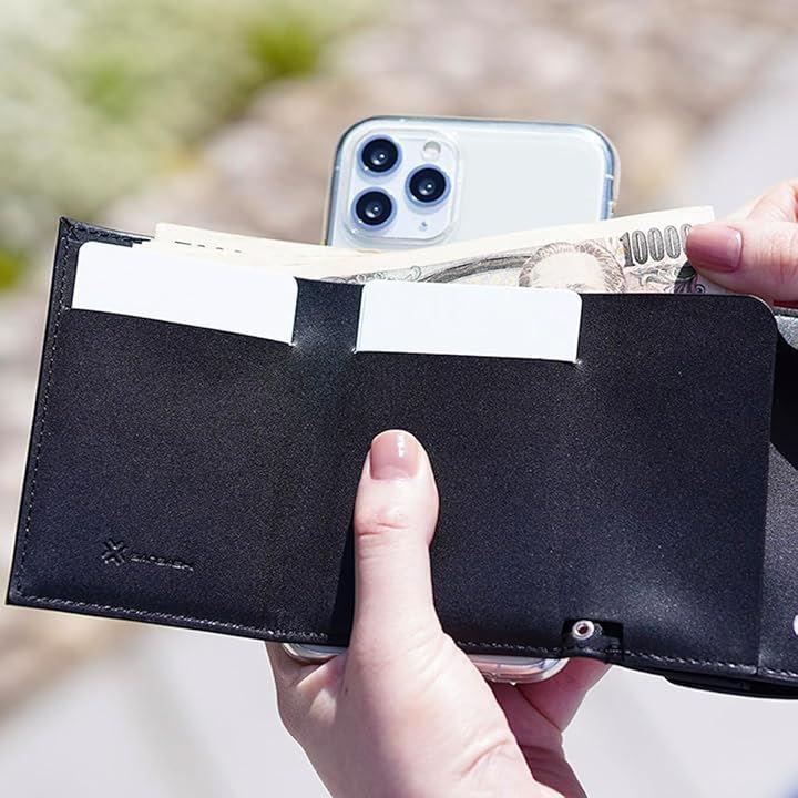 「ワイヤレス充電対応」 財布の着脱が自由なので、財布を外せばワイヤレス充電に対応 * 素材:合皮 * サイズ:約W68xH98xD11(最薄部)~24mm * 重量:約43g * 収納容量:(約)カード4枚・お札8枚・コイン20枚・鍵1つ *収納する内容物によって、収納できる容量数は変化します。