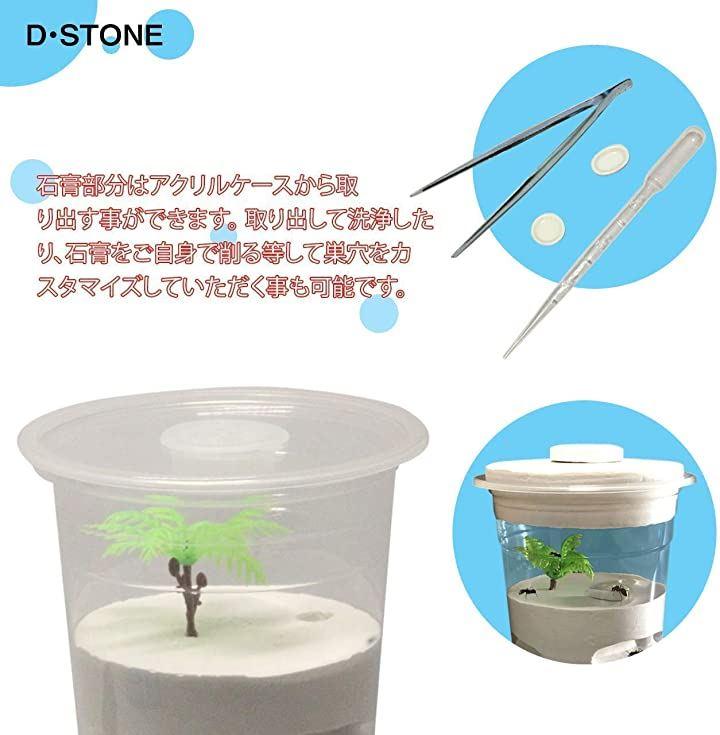 石膏製の巣は腐らず環境維持も簡単で、アリも快適に暮らせる、まさに理想的な飼育環境です。