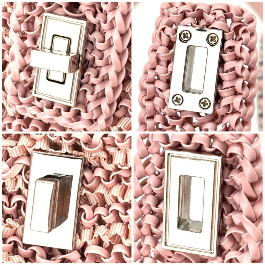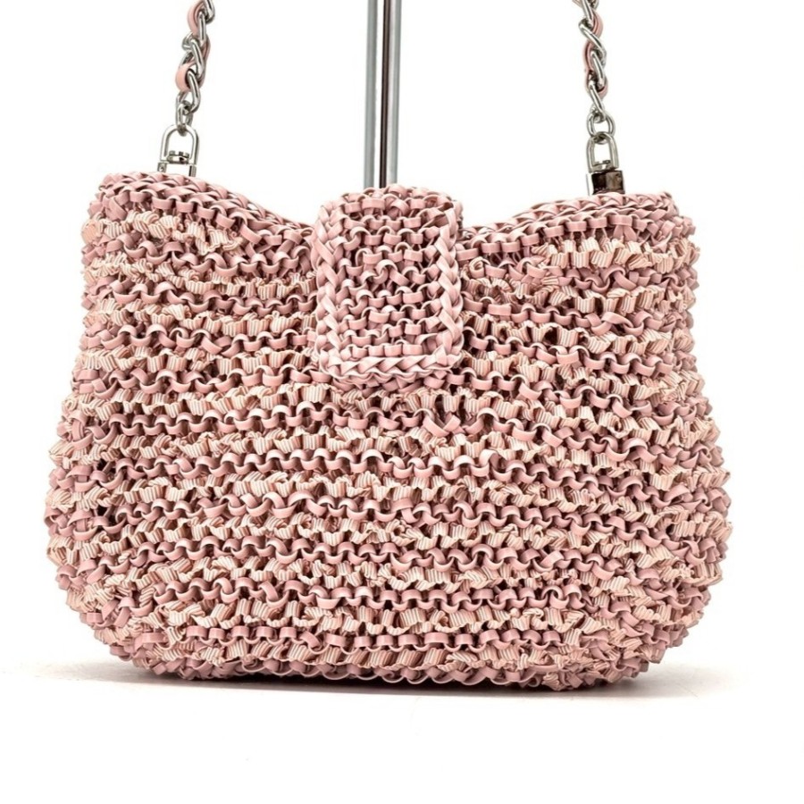 【商品説明】・トレンドのミニバッグを、より軽やかに楽しみたい方へ。繊細に編み込まれたワイヤーと柔らかなピンクが、春夏コーデに抜け感を添えます。アクセサリー感覚で持てるサイズ感は、カフェ巡りやお出かけシーンにフィットします。