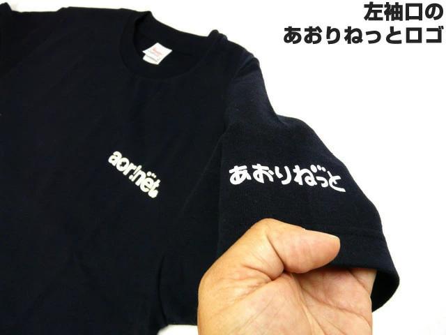左胸にはあおりねっとのアルファベットのロゴ。左袖にはあおりねっとのひらがなのロゴ。背中には沖縄 R58号線のロードマップをでっかくプリントしています。