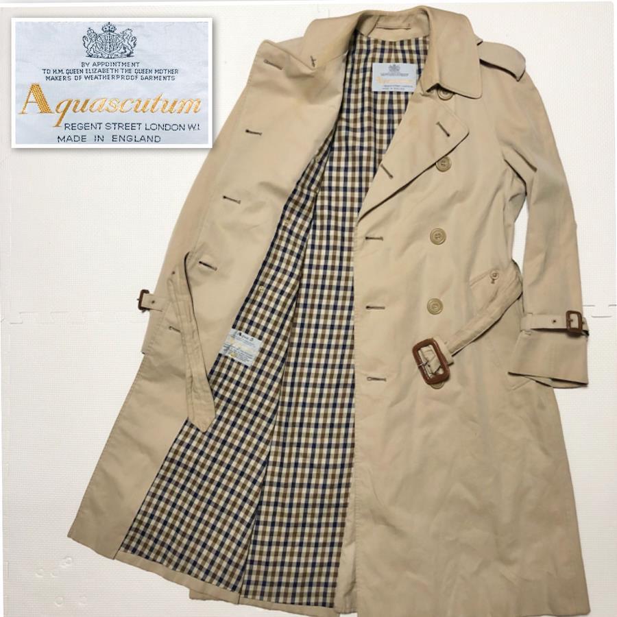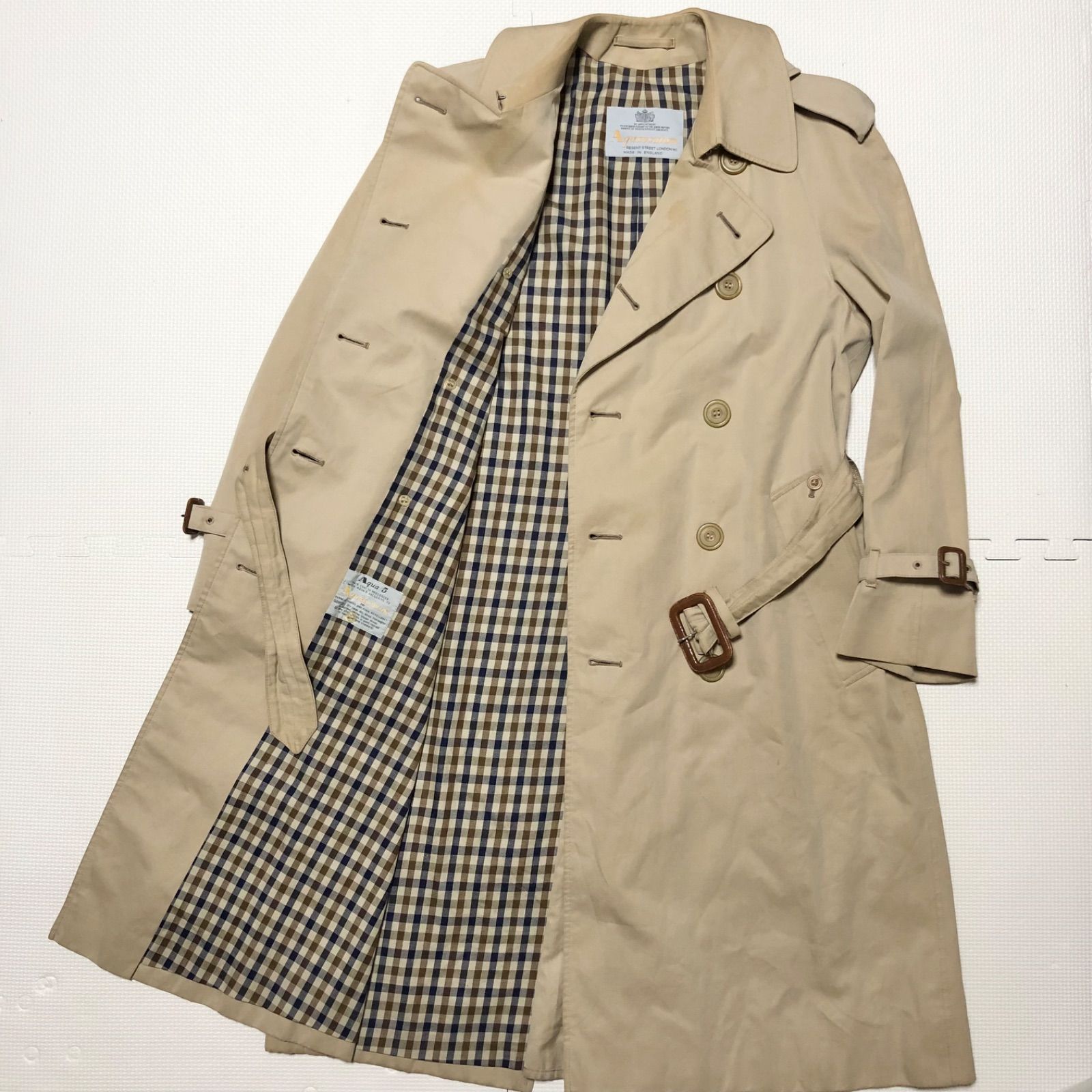 ■商品概要Aquascutum アクアスキュータムAqua5 アクア5ダブルトレンチコート ロングコートsize34 (S)英国製ベージュ×クラブチェックベルト ベルテッド春秋冬レディースラグジュアリー 高級 ハイブランド
