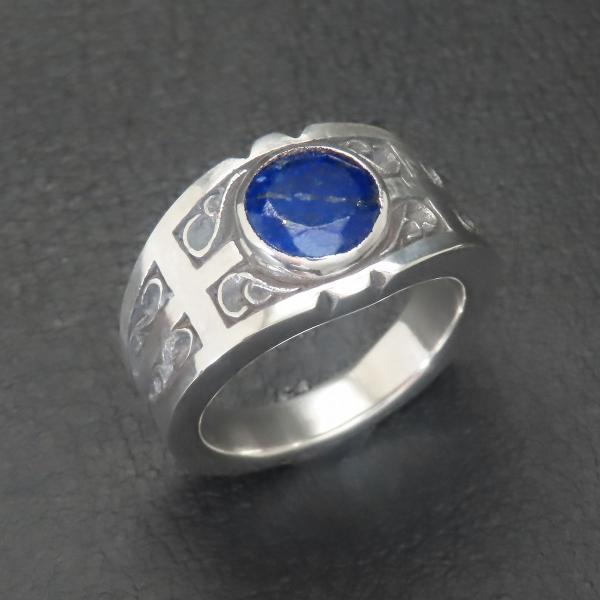Arabesque Cross Ring, Silver 925, Cross, Crucifix, Arabesque, Arabesque Pattern, Arabesque Ring, Lapis Lazuli, September/December Birthstone, Silver, Silver Accessories, Men's, Father's Day, Christmas, Present, Handmade, Grand Galleria