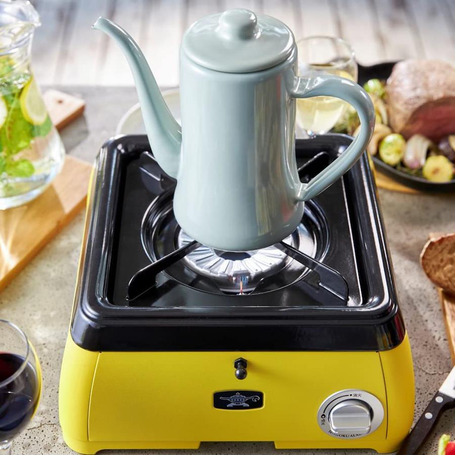 3営業日以内に発送≪新品未開封品≫:日本の伝統的な暮らしの道具「かまど」をイメージしたカセットコンロいつでも、どこでも、”Aladdin”をもっと身近に感じていただきたい。そんな思いから登場したのが”Sengoku Aladdin”のポータブルガスシリーズです。持ち運びに便利なコンパクトサイズのコンロなので、室内だけでなくアウトドアシーンでのご使用におすすめです。遊び心のあるポップなカラーバリエーションはこれまでのクラシックなアラジンとは一味違ったライフスタイルを提案します。■本体寸法:使用時/約W30.0×D41.2×H3.50cm収納時/約W30.0×D31.4×H16.6cm■本体重量:約3.3kg■発熱量:2.9kW(2500kcal/h)■材質:本体/鉄、PBT樹脂受け皿/ホーローごとく/ホーローつまみ/ABS/PC樹脂■安全装置:圧力感知安全装置(ガス通路閉止型)■連続燃焼時間:約1時間11分(最大2.9kW運転時)■点火装置:圧電点火方式■使用できる鍋のサイズ:最大/鍋底直径24cm最小/鍋底直径15cm※トップカバー使用時の場合■着脱方式:マグネット式■特徴:持ち出して使えるカセットボンベ式料理に合わせて火力調整が可能トルネードバーナー搭載で効率よく温める風に強い耐風設計耐荷重は20kg汁受け部分は取り外し可能でお手入れ簡単カラー:G