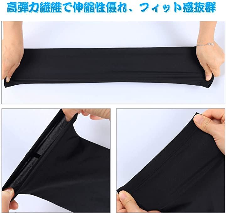 ・「素材」 90%ポリエステル+10%スパンデックス、接触冷感、弾力性と通気性優れ、シリコン滑り止め付き;「適用対象」男女兼用 、左右2枚セット;「サイズ」S、M、L、XL;「カラー」ブラックとホワイト。