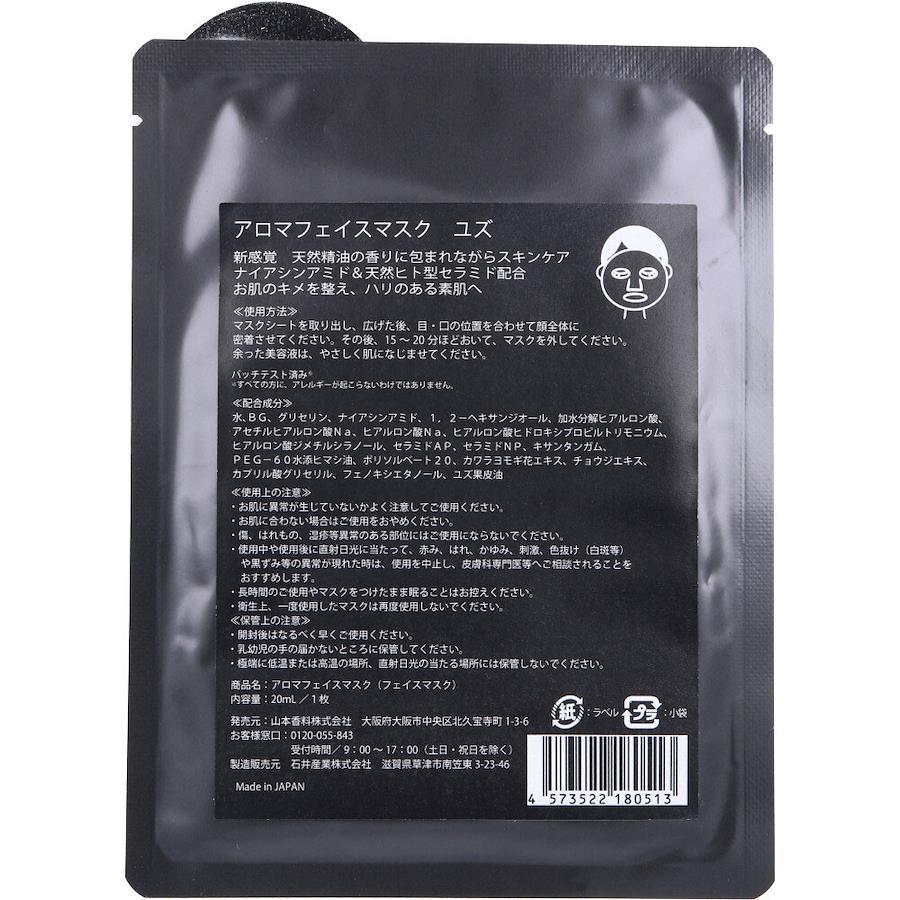 天然ヒト型セラミド&ナイアシンアミド高配合した美容フェイスマスクシートです。天然精油の香りに包まれながらお肌のキメを整え、ハリのある素肌へ導きます。●美容成分をたっぷり配合。うるおい溢れる素肌へ。保湿に優れた「天然ヒト型セラミド」を中心にナイアシンアミド、5種類のヒアルロン酸を配合。肌の角質層まで浸透※し、モチッとハリのある肌へ導きます。※角質層まで。・保湿・美容成分天然ヒト型セラミド、ナイアシンアミド、ヒアルロン酸Na、低分子ヒアルロン酸(加水分解ヒアルロン酸)、スーパーヒアルロン酸(アセチルヒアルロン酸)、ヒアロベール(ヒアルロン酸ヒドロキシプロピルトリモニウム)、進化型ヒアルロン酸(ヒアルロン酸ジメチルシラノール)※パッチテスト済み(すべての方にアレルギーが起こらないわけではありません)。●お肌に加えて、アロマで心にもうるおいを。スキンケア時間を癒しのリラックスタイムに。天然精油100%使用。香料メーカーだからこそ品質にこだわった香りを厳選しました。美活しながらアロマテラピーをお楽しみください。・香り:Yuzu ユズ(国産 ユズ果皮油使用)ゆず生産量日本一と言われる高知県産の柚子から抽出した、香り高いゆず精油を使用。程よい苦みが合わさった甘く清々しい和の香りは、心をホッと優しく和やかな気持ちにさせてくれます。●生地は肌に優しくしっかりと密着するサステナブル素材、ヴェオセルブランドの繊維を使用。マイクロファイバー100%の柔らかな肌当たりで低刺激。敏感肌の方も安心してご使用いただける優しい繊維生地(ヴェオセル)を使用しています。吸水性が高く、お肌にぴったり密着するため、美容成分が無駄なく、隅々まで広がります。