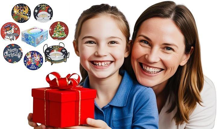 「大切な人に手作りを贈ろう。 ダイヤモンドペイントコースターはギフトにも最適」 美しい輝きと温かさを兼ね備えた、手作りのダイヤモンドペイントコースター。
