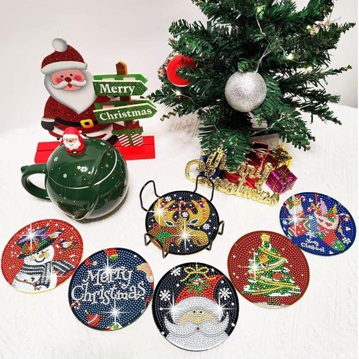 「ダイヤモンドアート コースターの作り方」簡単な手順で、キラキラ輝くクリスマスモチーフのコースターが作れます。