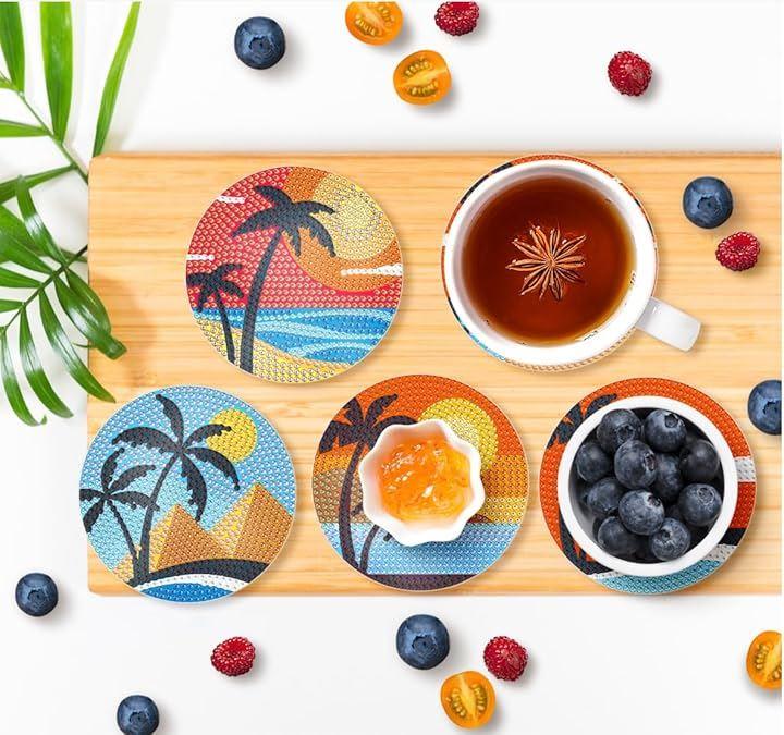 「大切な人に手作りを贈ろう。 ダイヤモンドペイントコースターはギフトにも最適」 美しい輝きと温かさを兼ね備えた、手作りのダイヤモンドペイントコースター。