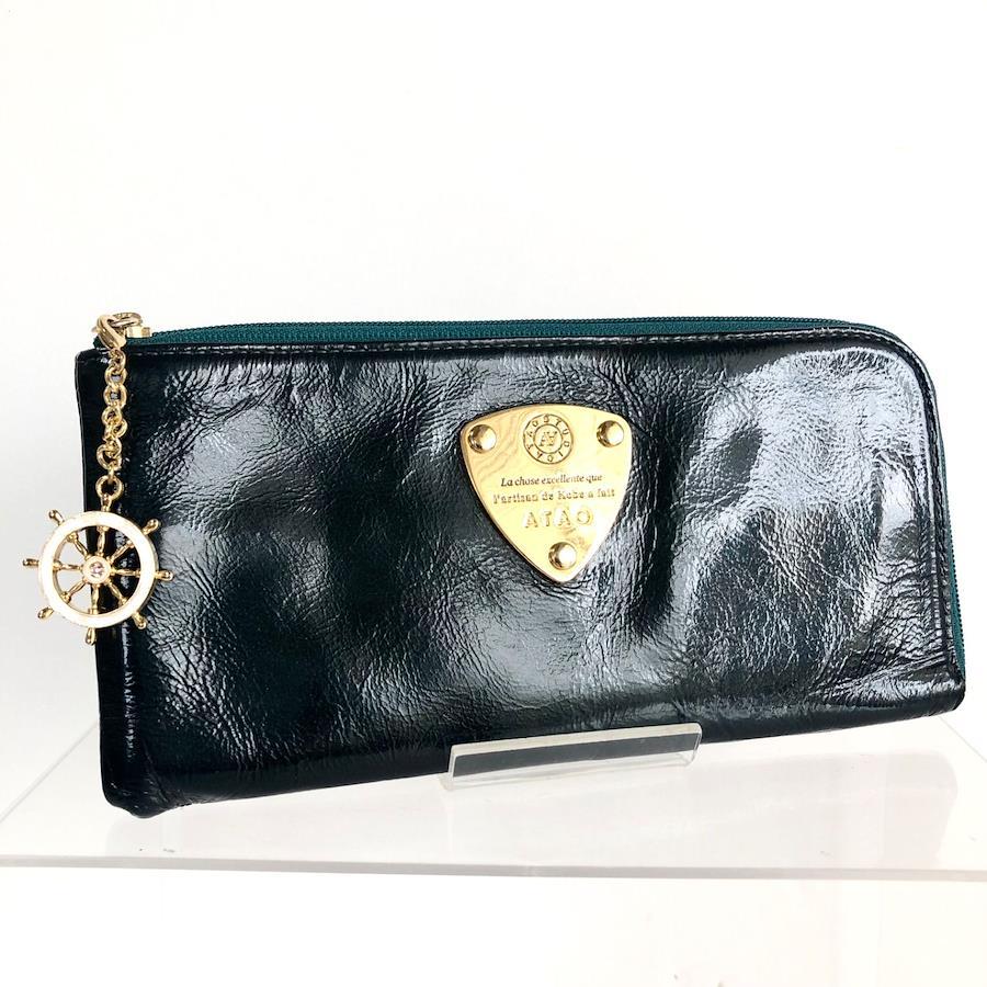 ■商品概要ATAO アタオリモパール舵チャームL型ウォレット L字ラウンドファスナー ラウンドジップ 長財布エナメルレザー パテントレザーダークブラウンゴールド金具日本製タグあり