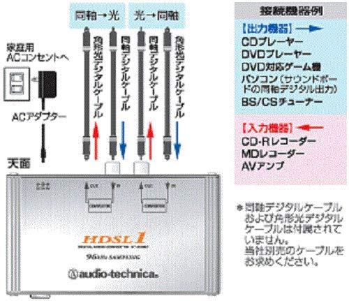 ■デジタル信号の「同軸」と「光」を相互に変換することが可能です。「同軸」→「光」、「光」→「同軸」でのデジタル接続が可能になります。 ■サンプリング周波数96kHzに対応しています。 ■各種デジタルサラウンド方式に対応してます。 ■防塵シャッター付き角型光ジャックを採用しています。 ■H26×W128×D17.5mm(突起部を除く)と、持ち運びや設置がスムーズな薄型コンパクトサイズです。 ■AC100V専用ACアダプター付属。 ※入力機器と出力機器のサンプリング周波数が異なる場合は、互いの機器が対応していること(サンプリングレートコンバーター搭載タイプなど)をご確認ください。 ※レーザーディスクプレーヤーなどからのRFデジタル信号には対応しておりません。 ※同軸光デジタルケーブルおよび角型光デジタルケーブルは付属されていません。当社別売のケーブルをお求めください。