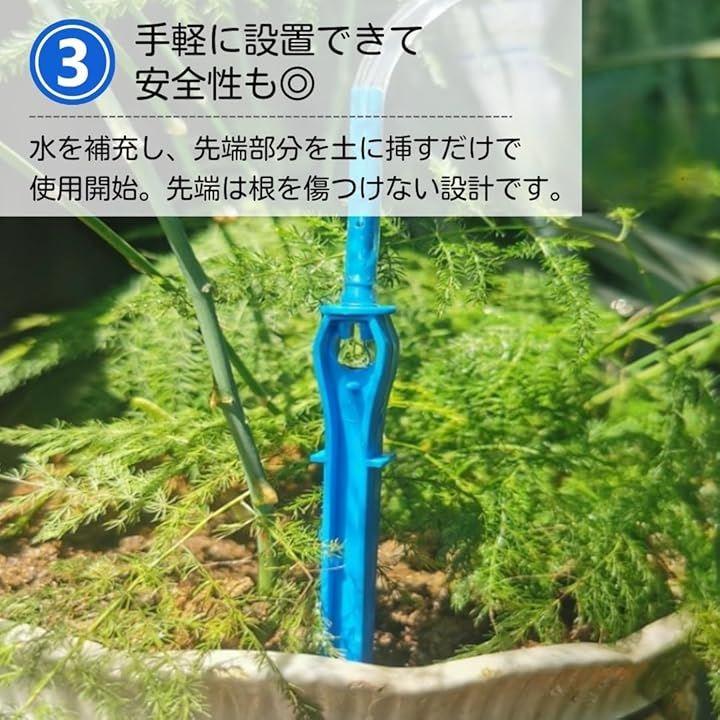 「簡単設置」水を補充後、プランターの土に挿すだけで簡単に使用を開始することができます。
