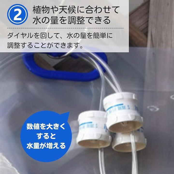 「植物に合わせて水を調整可能」ダイヤルを回すことで水の量をコントロールでき、数値が大きいほど水の流れが速くなり、多くの水を供給します。