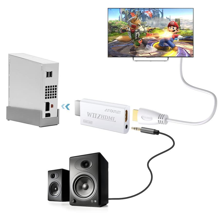 【UPGRADE 1.5M HDMI CABLE】With 1.5M high quality HDMI cable, no need to buy anywhere else. Note: If you have any problems with the product quality, please contact us. We will contact you within 24 hours of business day 【Wii to HDMI Converter】This audio converter adapter can convert Nintendo Wii to HDMI compatible devices 【Plug and Play】One HDMI cable allows you to connect the Wii console to your HDTV No power adapter or other cord needed 【Compatible with all Wii Display Modes】This AUTOUTLET Wii to HDMI converter is not an upscaler compatible with NTSC 480i 480p and PAL 576i 【Excellent Audio/Video Quality】Supports 720p/1080p HD resolution, 3.5mm audio output port, audio/video is in full digital HTMI format, no transmission loss. It only supports high-definition display with HDMI interface, not support for use with other converters. (18 months warranty against quality problems)