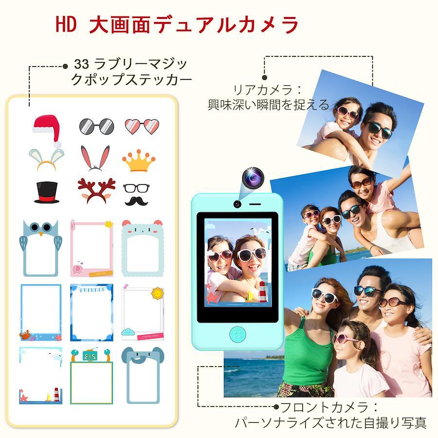 【アップグレードされたタッチスクリーン子供用携帯電話】この2.8インチのタッチスクリーン子供用スマートフォンは、学習でも娯楽でも子供にとって最良の選択です。 このおもちゃの電話には、デュアル カメラ、フォト アルバム、音楽プレーヤー (ヘッドフォン付き)、15 のパズル ゲーム、3 つの目覚まし時計、15 の興味深い壁紙、タイマー、ストップウォッチ、カレンダー、懐中電灯、歩数計、レコーダー、電卓、12/24 時間形式、等 3歳から8歳までの男の子と女の子へのクリスマス、誕生日、ホリデーギフトに最適です。【デュアルカメラ子供用携帯電話】子供用スマートフォンは、本物のスマートフォンと同じように写真を撮るためのデュアルカメラをサポートしており、前面と背面をすばやく切り替えることができ、カスタマイズが簡単です。 かわいいステッカーが34枚入っています。 子どもたちは、お気に入りのステッカーを選んで写真を撮り、家族や友達との人生の美しい瞬間や興味深い経験を記録します。 紛失を防ぐために、子供用携帯電話には持ち運びに便利な耐久性のあるコードが付いています。 お子様は簡単に自分撮りをしたり、家族や友達と一緒に楽しい写真を撮ることができます。 このおもちゃの電話は時間と楽しみを提供し、子供たちが写真のスキルを磨くのに役立ちます。【ヘッドフォン付き音楽プレーヤー】子供用携帯電話はMP3形式の音楽と3.5mmヘッドフォンジャックをサポートしています。 この子供用音楽プレーヤーは高品質のスピーカーを搭載しており、子供たちはヘッドフォンを使用して自分で音楽を再生したり、パーティーで家族や友人と一緒に楽しい音楽を楽しんだりできます。 3.5mmヘッドフォンジャックは、子供の静かな時間の勉強や音楽鑑賞に適しています。 USB充電ケーブルを介してコンピュータに接続し、曲をSDカードの「My Music」フォルダにコピーできます。 (注:音楽を転送するときは、電話の側面にあるオンボタンをオンにしてから電話の電源を切り、コンピュータに接続してストレージディスクを取り出し、Eドライブを開いて「マイミュージック」を見つけます)。【15種類の楽しいゲーム】子供用モバイルおもちゃ用の教育用ゲームが15種類内蔵されています。 女の子向けの着せ替えゲーム、バスケットボール、レース、男の子向けの金貨ゲームなど。 子どもたちは自分の好きなゲームを選ぶことができ、子どもの論理的思考能力、手と目の協調能力、反応能力を鍛えるのに役立ちます。 お子様の携帯電話のゲーム設定で各ゲームの音をオフにすることができるので、騒音を気にする必要がなく、退屈な時間を短縮するために長旅に非常に適しています。【お子様へのプレゼントに最適】2023年にアップグレードされた最新の子供用おもちゃの携帯電話は、お子様がテクノロジーの世界に足を踏み入れるための優れた入り口となり、独特の色、独特の雰囲気、高品質でお子様が手放せなくなります。 高解像度のカラータッチスクリーン、キュートで興味深い漫画のインターフェイス。 この偽の携帯電話は子供たちに人気のおもちゃで、3歳から12歳までの子供たちへのクリスマス誕生日旅行ギフトに最適です。【免責事項】メーカーによる商品リニューアルに伴いパッケージ(内容量も含む)変更が行われた場合、新パッケージでお届け致します事ご了承願います。