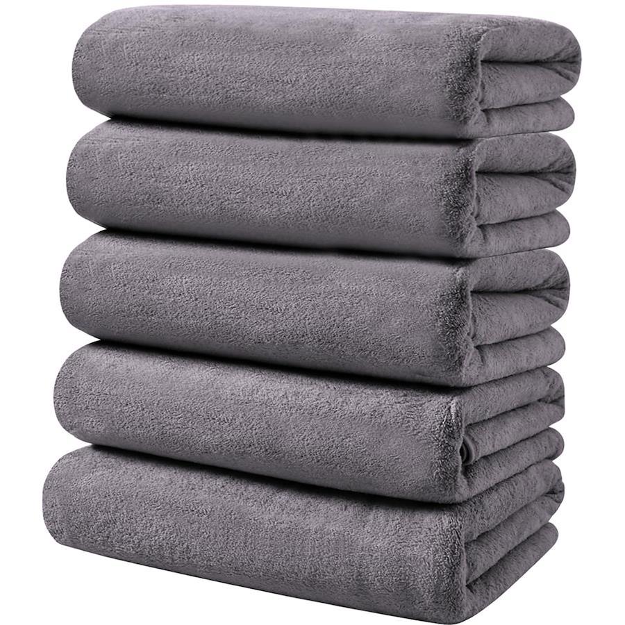 【マイクロファイバー素材】丁寧に織り上げた高品質極細繊維です。一般的なマイクロフアイバ-のタオルと比ベて約2倍以上のボリュ-ムがあり、ふんわりと包み込まれるようなリッチな使い心地。両面ともに厚手なのが機能性がさらにアップです!特徴:吸水速乾、軽量、糸抜け防止、通気性が強い、静電気なし、蛍光なし。想像を超えるふわっふわの触り心地なので、大人だけでなく敏の肌も?日を心地よく包みこみます。 【ぐっと吸水 さらっと速乾】。毛髪の1/100の超極細繊維(マイクロファイバー繊維)素材の表面は数えられない隙間があり、瞬間に大量の水分を吸収し、驚くほどの吸水性と速乾性を発揮します。通気性も良いので湿気も早く乾きます通気性も良いので湿気も早く乾きます。髪や肌に軽くなじませると水分を吸収し、汚れが落ちやすい性質を持った素材です。速乾性があり、使った後の乾燥も早いので、いつでも快適に使えます。室内で干すのはOK! 【毛羽が出ない、耐久性に優れ】 マイクロフアイバ-はとても細かい纎維のため、その折れにくい強靭な長い糸に精製織法を採用して毛羽落ちを抑制します。繊維もタオルの表面から外れにくくなります。また、比較的に色持ちが良く、何回洗濯を繰り返しても変形しにく、色あせしにくいです。 【超実用性、プレゼントに最適】ホームだけでなく、温泉や旅行、プールなども使えます。 お風呂上がり、ジム、エステ、プールなど様々なシーンで活躍します。自分が使うだけではなく、同僚、上司、お客様へのお礼、敬老の日、友達への贈り物、結婚祝い、親孝行、誕生日、お祭りなどのギフトにも適しています。 【タオル セット】サイズ:約60×120cm、40×100cm、34×75cm セット内容:5枚組/バスタオル 3枚組/バスタオル 4枚組/バスタオル 10枚組/フェイスタオル 5枚組/ヘアドライタオル 。グレースモークブルー ライトグレースモークコーヒーなど、多くの色を揃えています。お部屋の雰囲気や好みに合わせて選べ、バスタイムを楽しくします。出張、旅行、入浴、ご家族皆さんが満足できます、様々な場合で活躍。