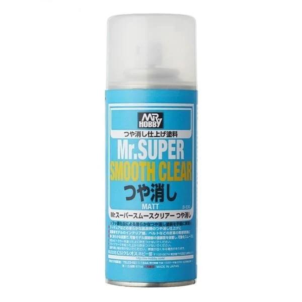 GSIクレオス B530 Mr.スーパースムースクリアー つや消し スプレー スーパースムースクリアー つや消し は“つや消しクリアーの塗膜を滑らかに!”をコンセプトに開発されたつや消しクリアー塗料です。“フッ素”を配合することにより従来のつや消し塗料と比べて滑らかな塗膜を形成することが可能となりました。また、従来品(C182, B514)と比較すると、つや消し添加剤の粒が小さく、隙間なく被塗面をコートするため、しっとりとした塗膜を得ることができ、白ボケ感も軽減されています。成型色状態に吹き付ければ、まるで全塗装をしたかのような質感を生み出します。塗膜が滑らかになることで塗膜同士の摩擦抵抗を軽減することができるため・・・→キットのポージング時のパーツの擦れキズを低減→パーツとパーツが擦れる部分に塗装することで可動をスムースにといった、これまでになかった画期的な機能をもっています。※特殊処理により本商品塗装後の上塗りやウェザリング塗装も可能です。