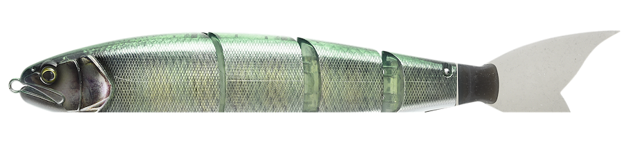 ファストリトリーブ時の凄まじい動きの“ライブ感”デッドスティッキング時の“静の中の動”そしてエイトトラップ®という狂気的な“魔力を持った釣法”この3つの魔力を持ったジャイアントベイト今までのジャイアントベイトに無かった超高速リトリーブを多連結ボディで可能にし、高速巻きでも安定したスイム姿勢をキープすることで逃げ惑うベイトを極限まで演出。ストラクチャーに潜む早い動きにしか反応しないデカバスを仕留めます。デッドスティッキング時には多連結ボディとシリコンテールが生物的で艶めかしい動きを演出し、スレたデカバスを誘いだしショートバイトも逃さない3フックシステム搭載でデカバスを仕留めます。そして特に強い魔力を持ったエイトトラップ釣法。(8の字釣法)足元まで追いかけて来たデカバスを完全に狂わせ、今迄完全に諦めてきた全てのフィッシュイーターにもう一度スイッチを入させることができる釣力はまさに魔力。これから始まる『ジャイアントベイトの新境地』覚醒した貴方に逃げ道は無くなる!!!