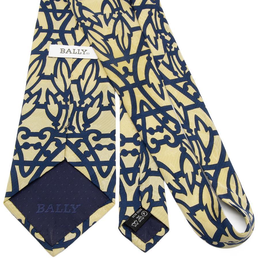 BALLY 領帶,常規款領帶,提花領帶,男女款,真絲材質,米色和藍色,商務休閒皆宜,通體印花,引人注目,高端品牌,獨特時尚,意大利製造,精美,P365