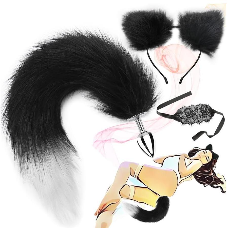 【アナル 尻尾+猫耳+アイマスク】かわいらしいネコミミとプラグ付きのしっぽがセット。猫耳と尻尾がとっても可愛いデザイン。初心者でも簡単に着けられます。smプレイ中に相手につけてもらえば、とても可愛く、相手も喜んでいっぱい撮影したくなることでしょう。