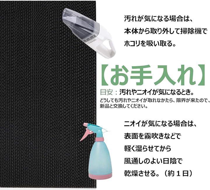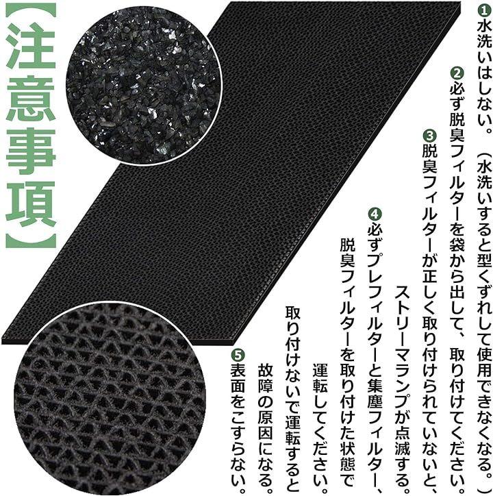 「機能」良質な吸着素材の活性炭を採用し、トイレのニオイ、生ゴミのニオイ、ペットのニオイとタバコの煙などの生活臭を効果的に除去する。