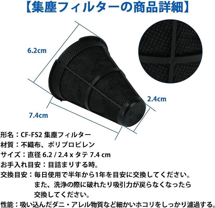 「交換目安」 CF-FS2 集塵フィルター は毎日使用で半年から1年を目安に交換してください。