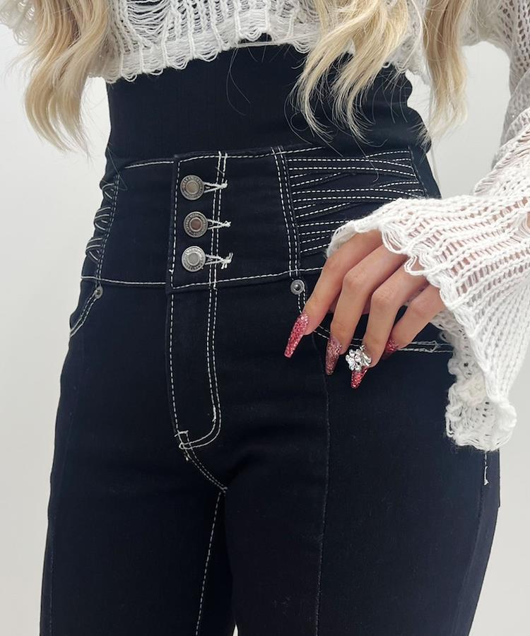 【美脚&スタイル爆盛れのフレアデニムで、ギャルのためのシルエット完成◎ウエストのレースアップが超あざと可愛くて、くびれ見せも余裕】