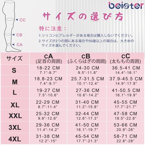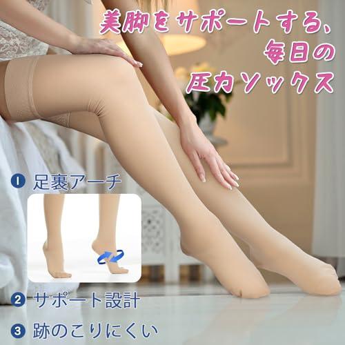 段階圧力設計: 20-30mmHg着圧ソックスは、足首からふくらはぎ、太ももまでの範囲で段階的に圧力がかかります。これにより、脚部をしっかり支え、快適に過ごすことができます。また、スタイリッシュなデザインと柔らかな素材で、日常使いや特別なシーンでも活躍します。旅行や長時間の立ち仕事の際にも、快適さを提供します。 人体工学デザイン: この圧縮ソックスは、柔軟でフィット感のあるシリコンドットバンドにより、一日中しっかりとフィットします。オープントゥスタイルは、つま先を圧迫せず、快適に着用できます。補強されたヒールは、長持ちする耐久性を提供します。生地は厚く伸縮性があり、着用しやすいです。 快適で耐久性のある: 男性と女性のために快適さを考慮して作られた不透明で耐久性のある太ももまで届くストッキング。ドイツの専門の製造機械と高品質の生地を使用し、優れた価値の圧縮ソックスを作成しています。生地は最適な温度を保ち、良好な通気性を提供し、柔らかい感触で一日中快適に着用できます。 日常生活での利便性: スポーツ時だけでなく、オーバーニーソックスとして仕事中や旅行中など、さまざまなシーンで着用可能です。特に長時間の移動に適しており、快適に過ごすことができます。これにより、日常生活の中で活躍するアイテムとなっています。 満足保証: 万が一ご購入にご満足いただけない場合、全額返金保証をさせていただきます。5つの異なるサイズでご用意しておりますので、必要なサポートと筋肉の疲労緩和をしっかり受け取っていただけます。