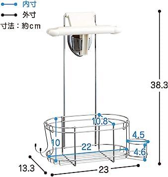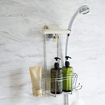 通常1-5営業日で発送:製品サイズ:幅23cm/奥行13.3cm/高さ38.3cm耐荷重:3kg(フック300gを含む)本体・フック・チューブポケット:ステンレス、本体樹脂部(ハンガー・可動プレート):ABS樹脂原産国:中国備え付けのシャワーフックに掛けるだけで収納スペースができるシャワーラックです。シャワーヘッドは、左右どちらか使いやすい方にさっと掛けることができます。